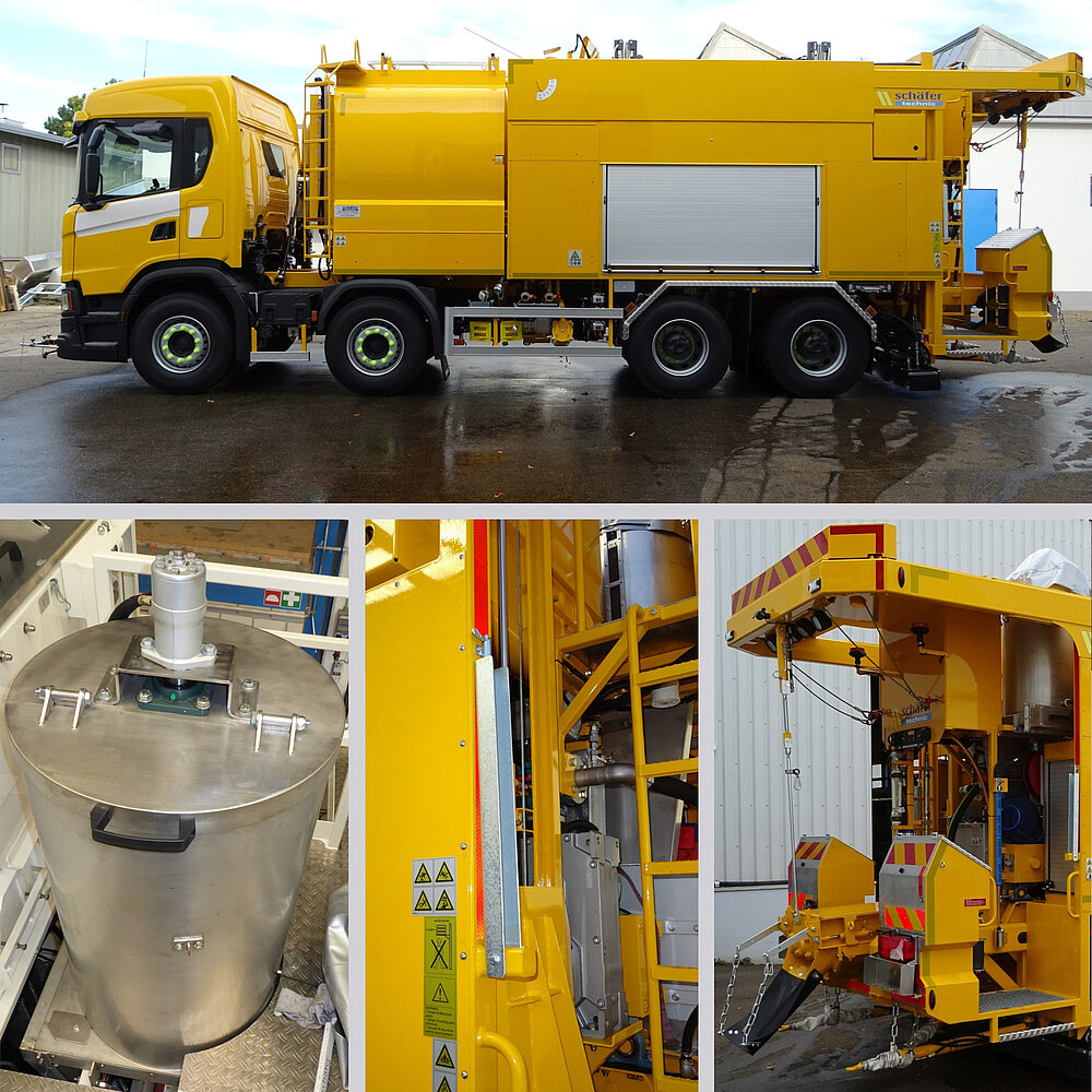 Thanks to a huge range of different equipment options, micro surfacing machines from schäfer-technic are ideal for any requirement. Additives such as lime, lime milk, fibres, colourless special emulsions and colour pigments can be incorporated. The range also includes special pavers, communication software with process data acquisition and additional adaptations.