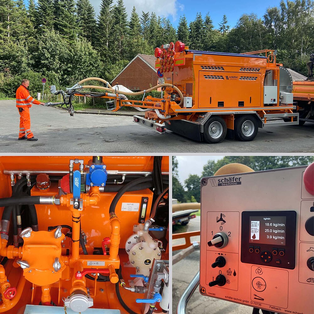 La máquina puede utilizarse independientemente del pavimento de asfalto. Dispone de una elevada capacidad de rendimiento y permite la colocación exacta de la mezcla de material en el área dañada. De esta manera, los Blow Patcher de schäfer-technic le ayudan a lograr sus objetivos al utilizar los materiales y recursos con moderación.