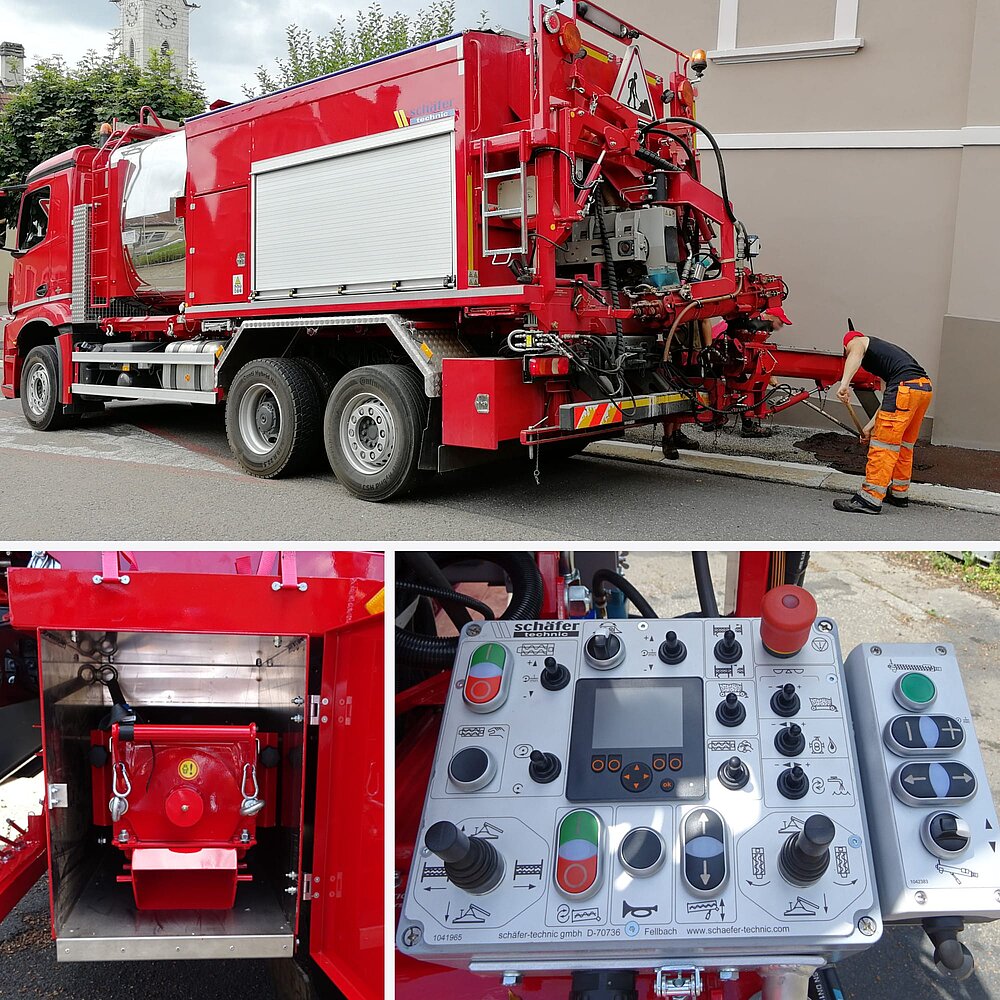 Los baches, las roturas por congelación, los hundimientos, las roturas en el borde del pavimento, la demacración de la superficie, las fisuras en retícula en las superficies de asfalto y los daños en las aceras pueden repararse con la máquina adecuada. Una renovación óptima reparará de forma sostenible los daños y mantendrá la seguridad del tráfico. Además, el pavimento de la carretera se puede preparar para otros trabajos (p. ej., tratamiento de superficies).