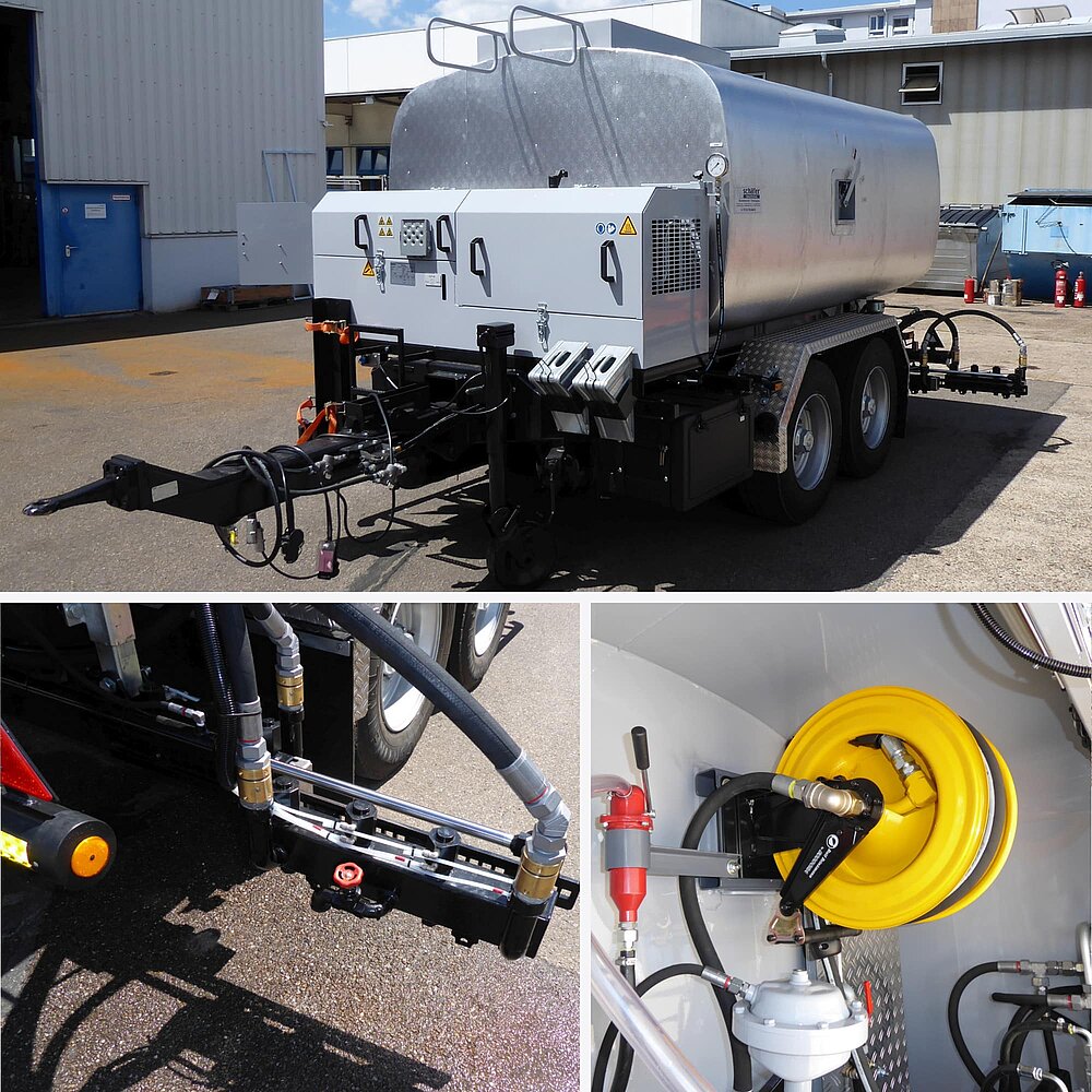schäfer-technic ofrece la máquina adecuada en función del tamaño y los requisitos de la obra con las opciones de equipamiento más variadas. Además de las máquinas de rociado previo, para este tipo de procesos también están disponibles las máquinas SKS o una combinación de ambas. Los remolques cisterna para betún transportan y almacenan el aglutinante.