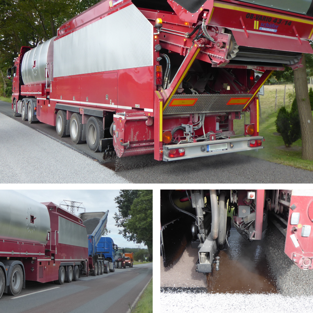 Einsätze mit den schäfer-technic OB-Maschinen sind ressourcen-, wege- und zeiteffizient. Großer Vorteil der Maschinen ist der deutlich reduzierte Rollsplittanteil dank der Hinterachs-Applikation. Dadurch wird die Verkehrsbeeinträchtigung minimiert.