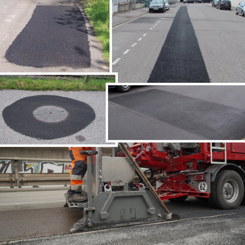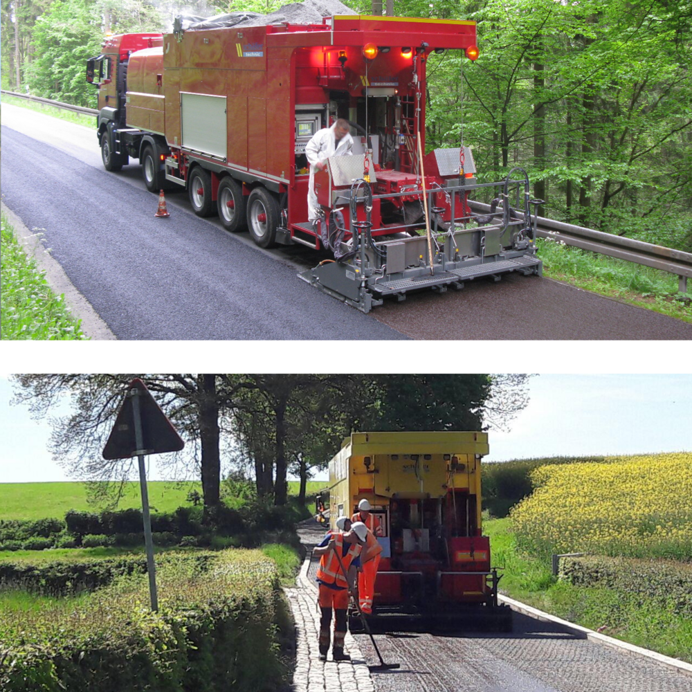 Für die Verwendung von DSK-Asphalt sprechen vor allem der geringe Primärenergiebedarf und die sich daraus ergebenden wirtschaftlichen Vorteile. Die Microbelag-Maschine vereint so ein mobiles Asphaltmischwerk und den Verleger auf der Baustelle.