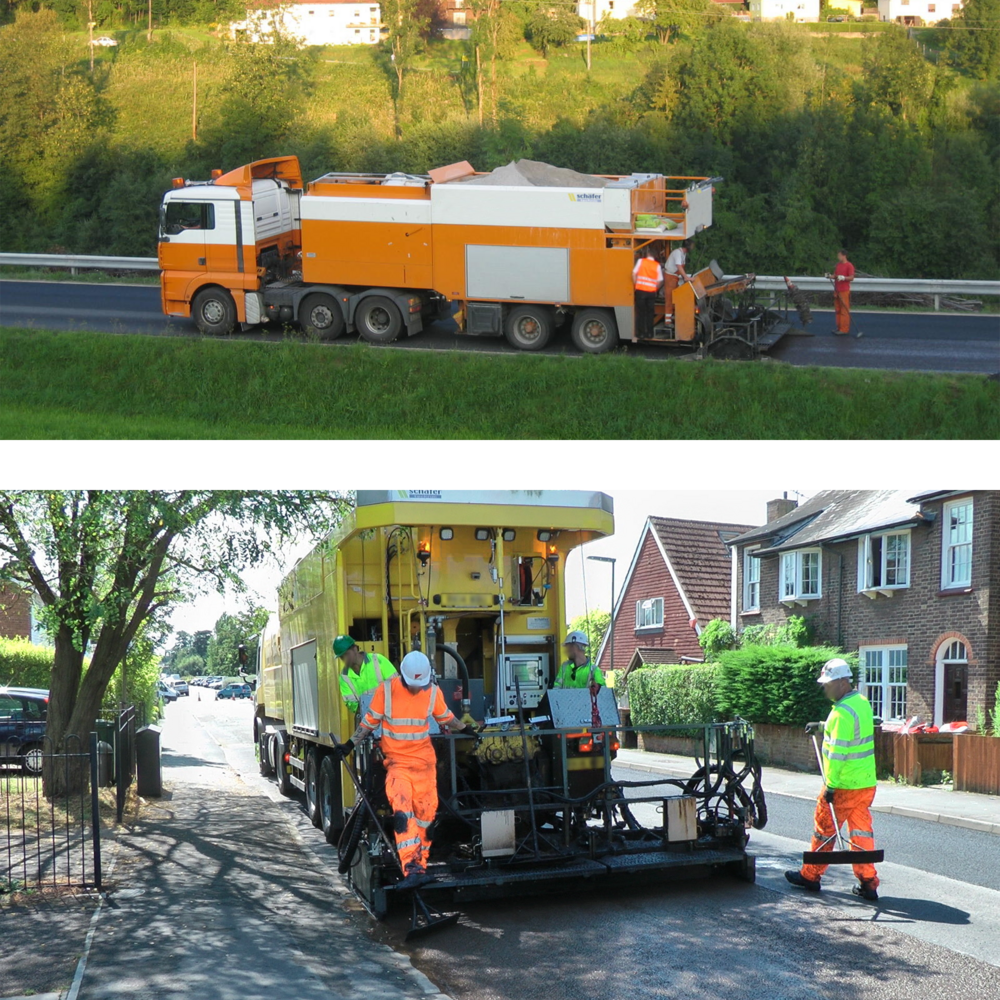 DSK-Verlegemaschinen sind dafür konzipiert, Qualitäts-Mischgut herzustellen und hochwertige Beläge einzubauen. Dazu muss die geforderte Rezeptur genau eingehalten werden und ein flexibles Handling mit der Einbaubohle gewährleistet sein. Die Microbelag-Maschinen von schäfer-technic sind allen genannten Herausforderungen gewachsen.