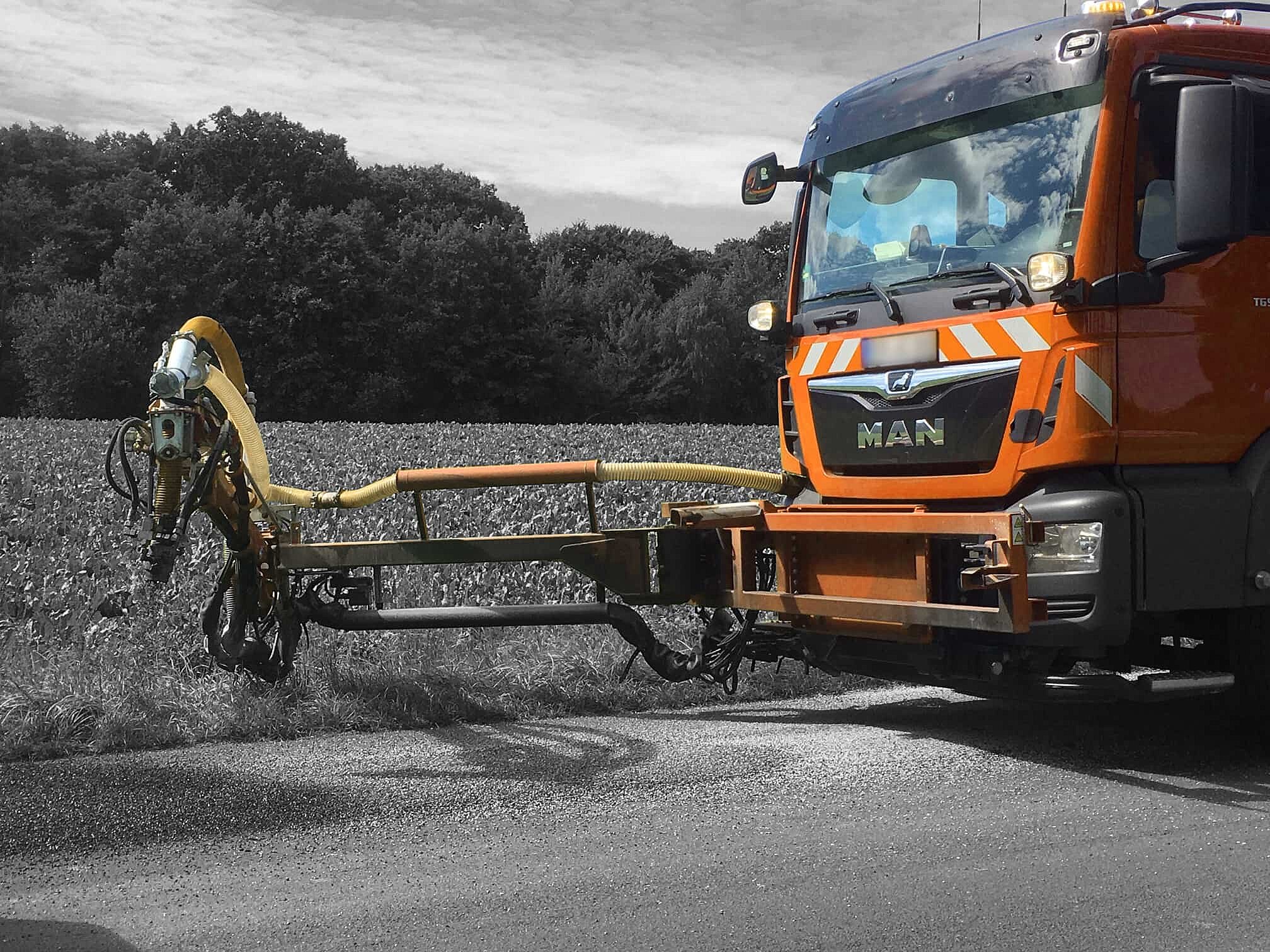 schäfer-technic bietet für die Oberflächenbehandlung Spritzrampen, Splittstreuer, OB-Maschinen und Reparaturzüge an.