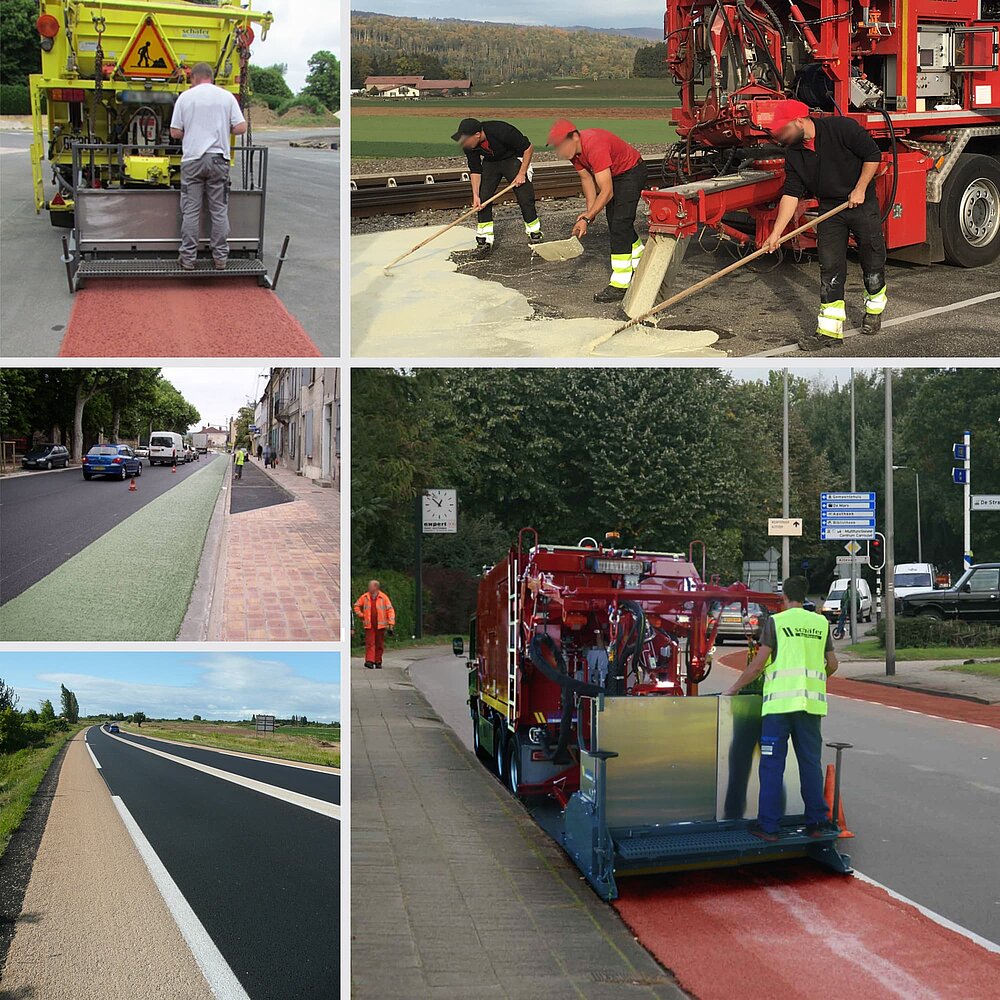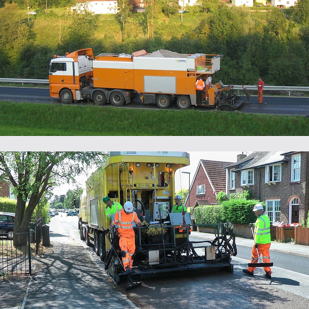 DSK-Verlegemaschinen sind dafür konzipiert, Qualitäts-Mischgut herzustellen und hochwertige Beläge einzubauen. Dazu muss die geforderte Rezeptur genau eingehalten werden und ein flexibles Handling mit der Einbaubohle gewährleistet sein. Die Microbelag-Maschinen von schäfer-technic sind allen genannten Herausforderungen gewachsen.