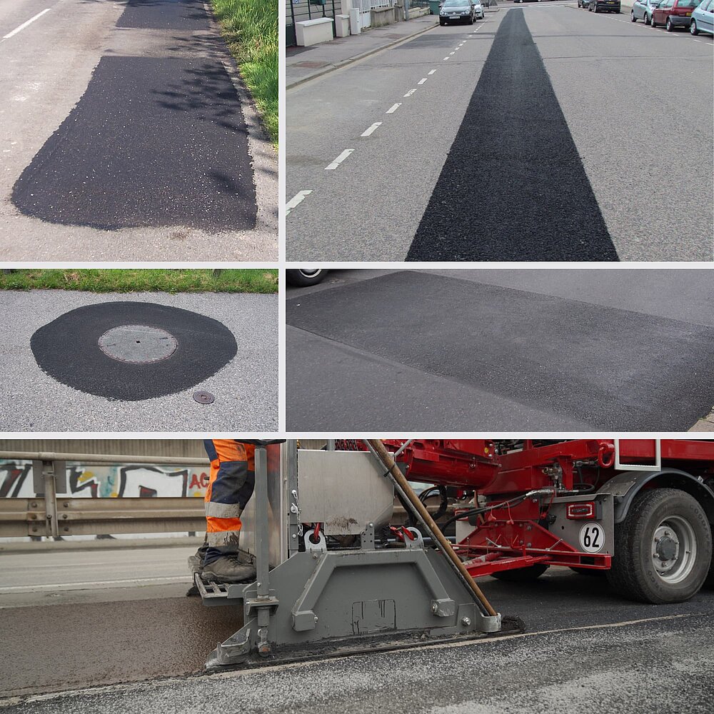 oder manuell mit DSK-Asphalt saniert werden: