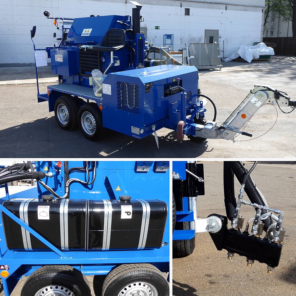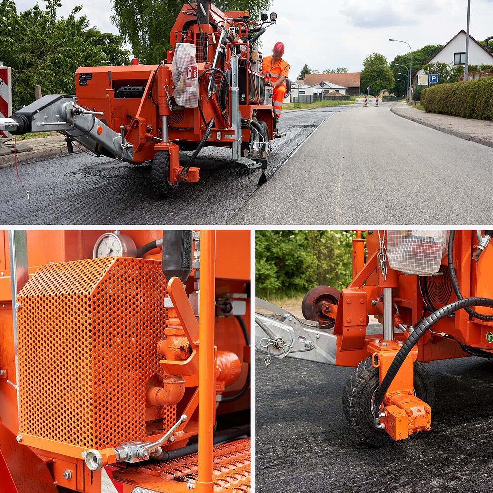 Con un inyector de bordes schäfer-technic montado adicionalmente, se puede aumentar la eficiencia de la caldera de la masa de sellado, realizar trabajos en las costuras centrales o sellar los bordes de la carretera.