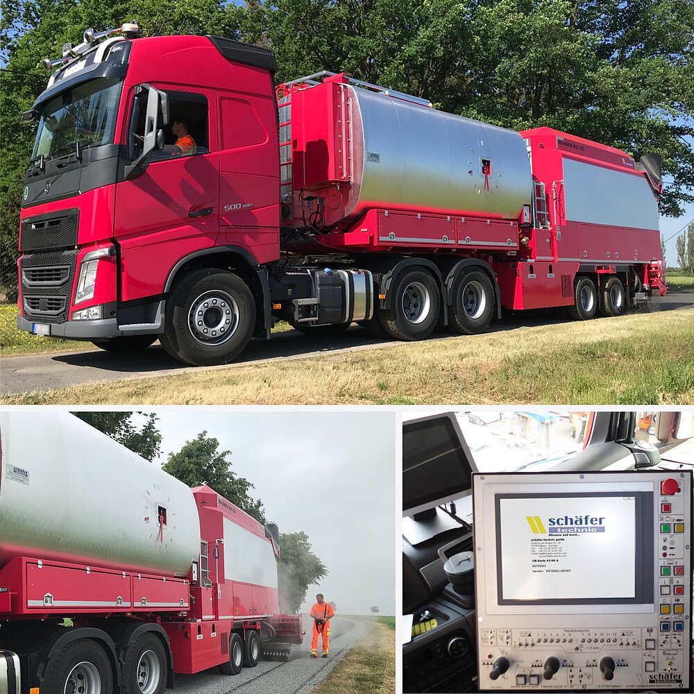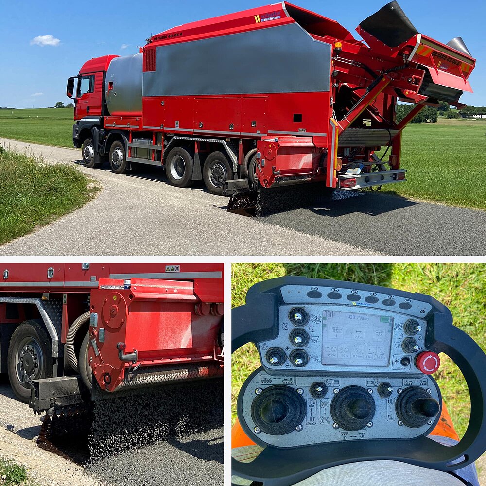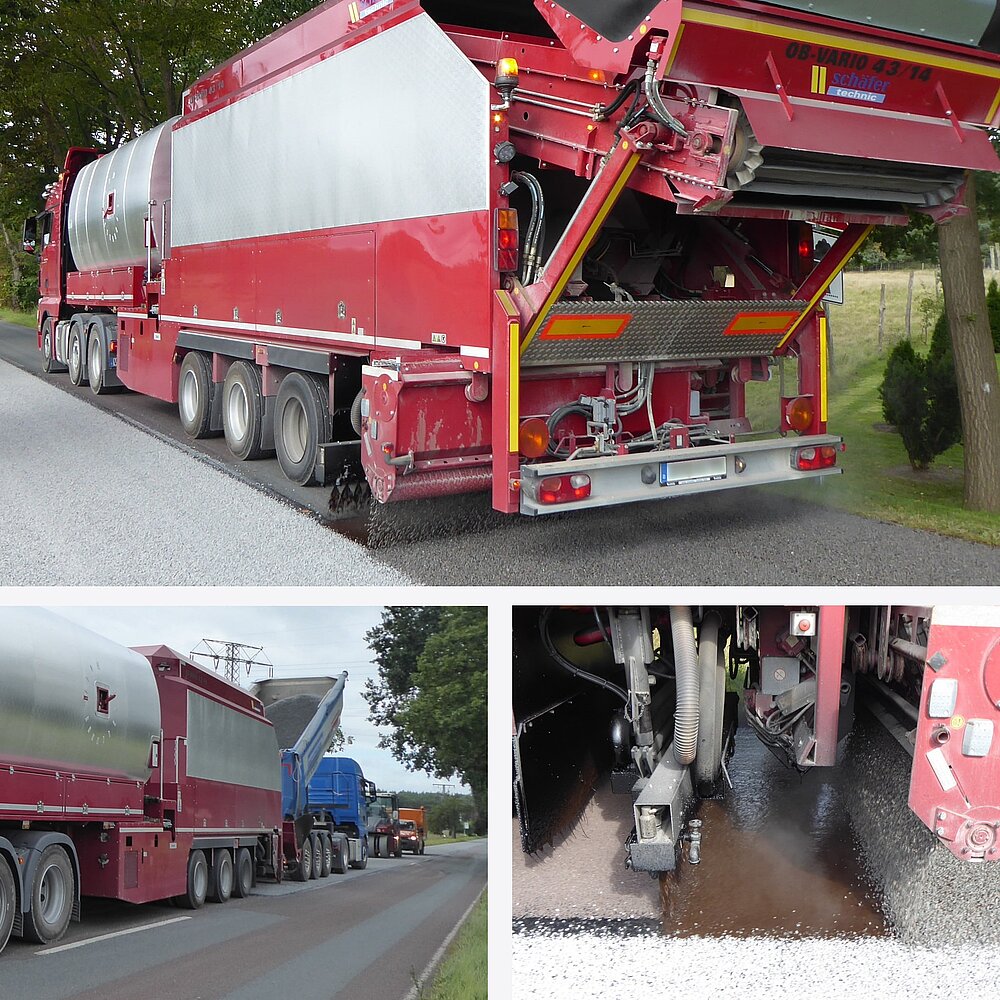 Einsätze mit den schäfer-technic OB-Maschinen sind ressourcen-, wege- und zeiteffizient. Großer Vorteil der Maschinen ist der deutlich reduzierte Rollsplittanteil dank der Hinterachs-Applikation. Dadurch wird die Verkehrsbeeinträchtigung minimiert.
